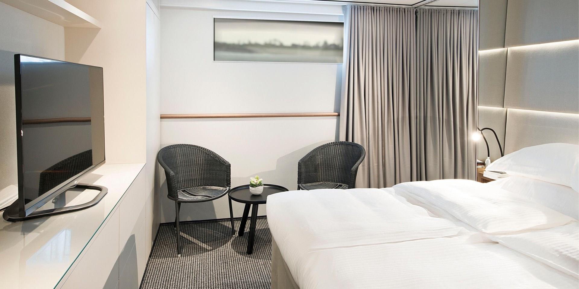 Staterooms boast a spacious layout when it comes to European small-ship river cruising. A picture window provides plenty of natural light, and your en-suite bathroom will be fully stocked with luxurious ESPA toiletries.